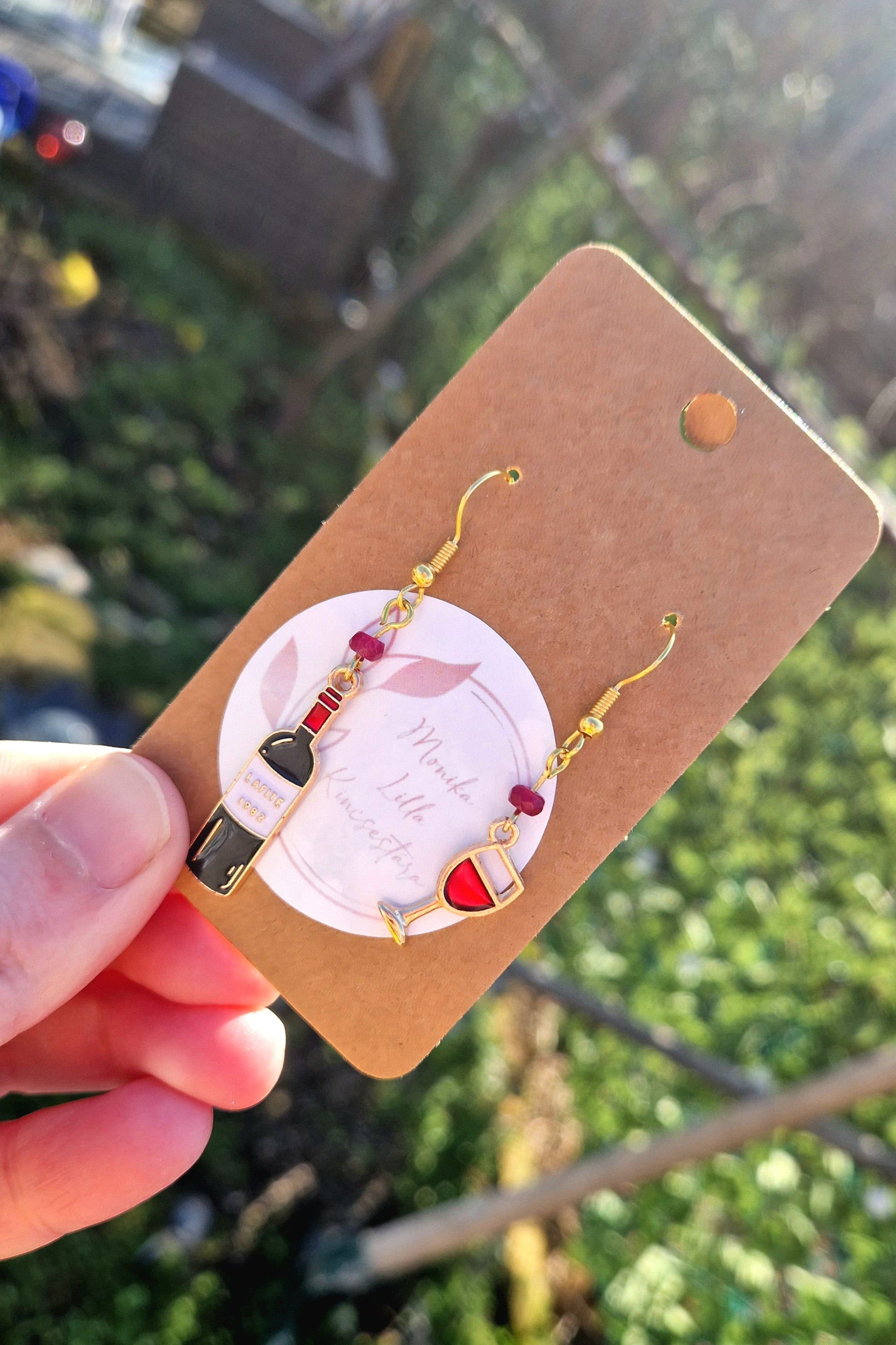 Borospohár és üveg fülbevaló